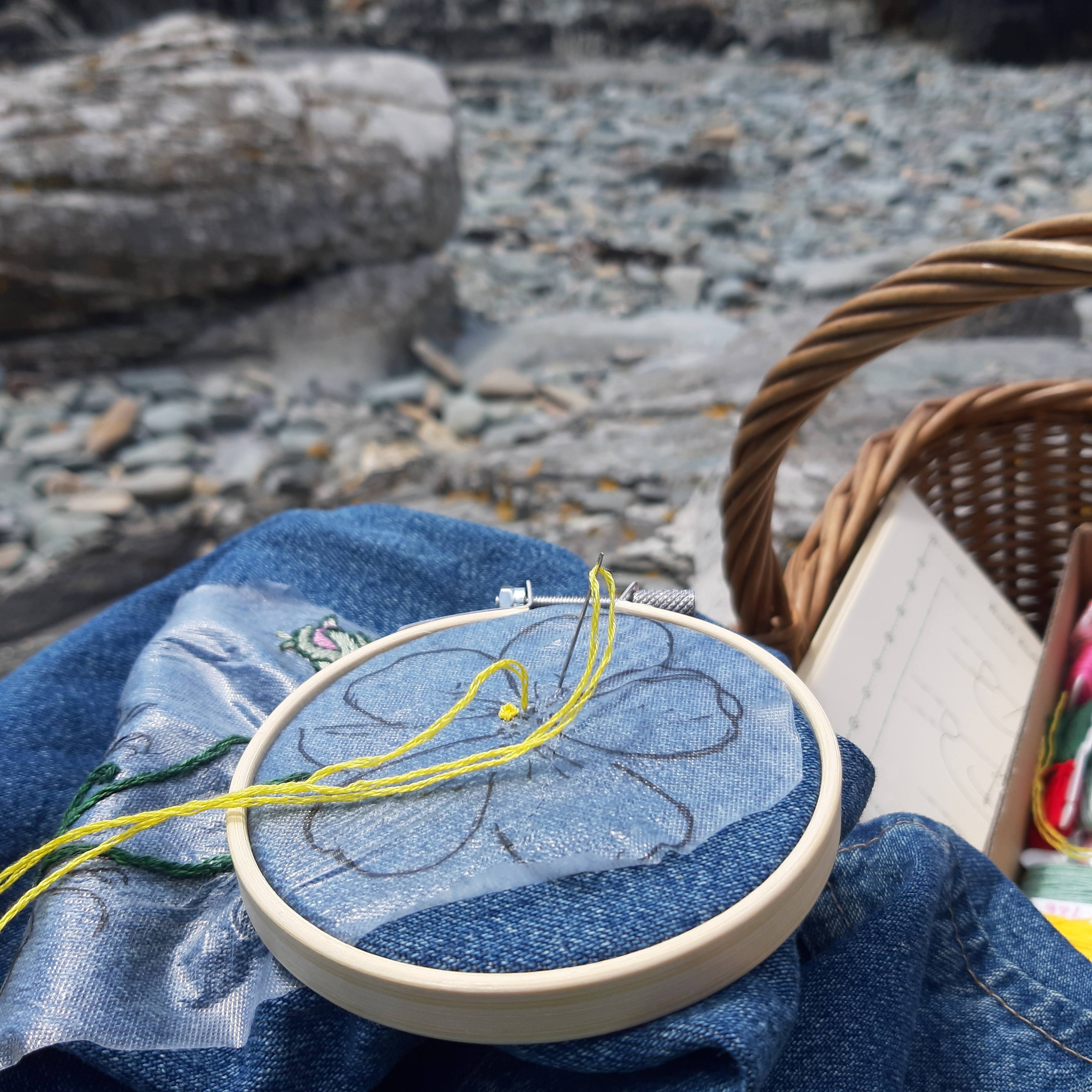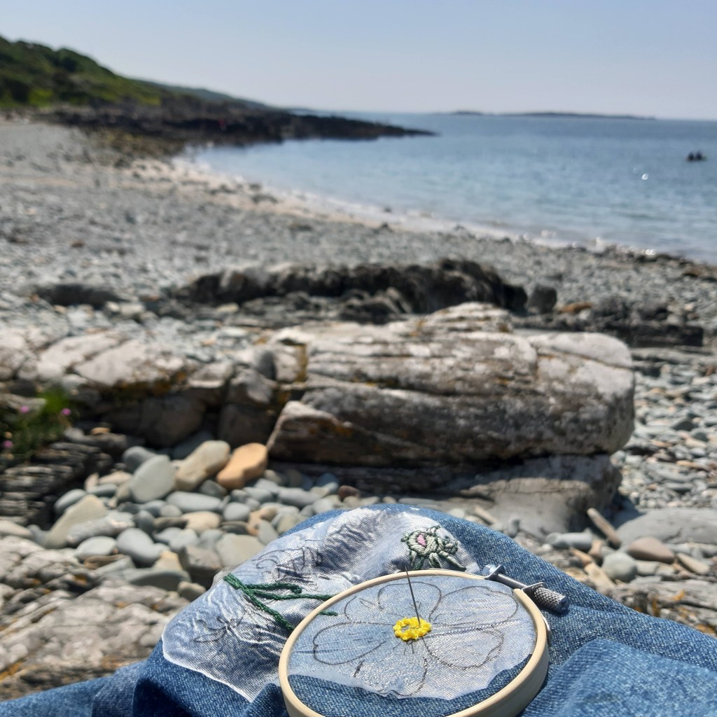 And this morning I headed down to the beach with my smock and reminded myself how to do French Knots. The muscle memory was there, and for a while there was just me, and the sea and our memories.