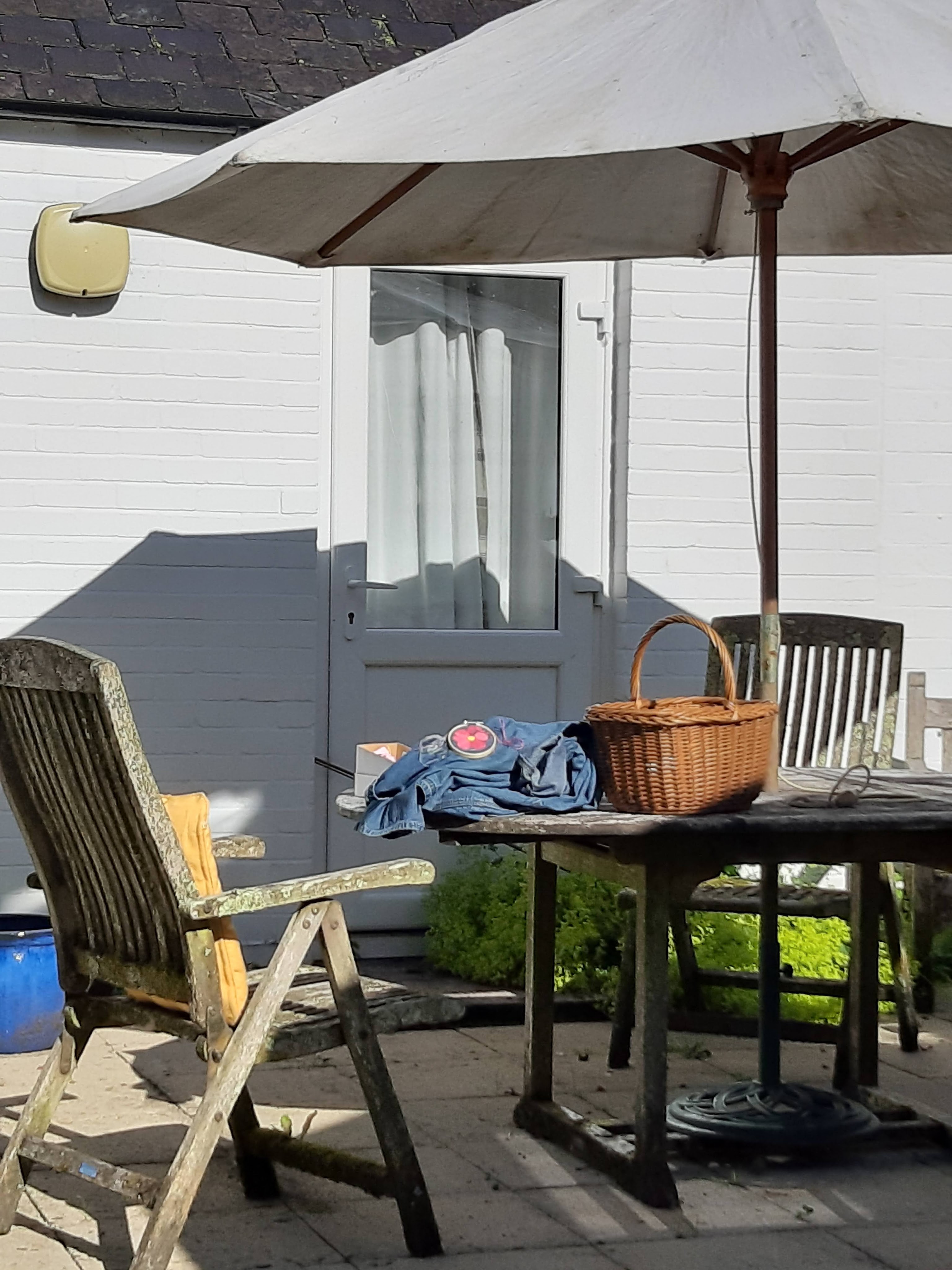 It was hot enough at breakfast time to eat outside again. And as today was a hospital visit day again I didn’t need to rush off to work, so filled a quiet hour with some stitches. It’s a lovely way to start a day.