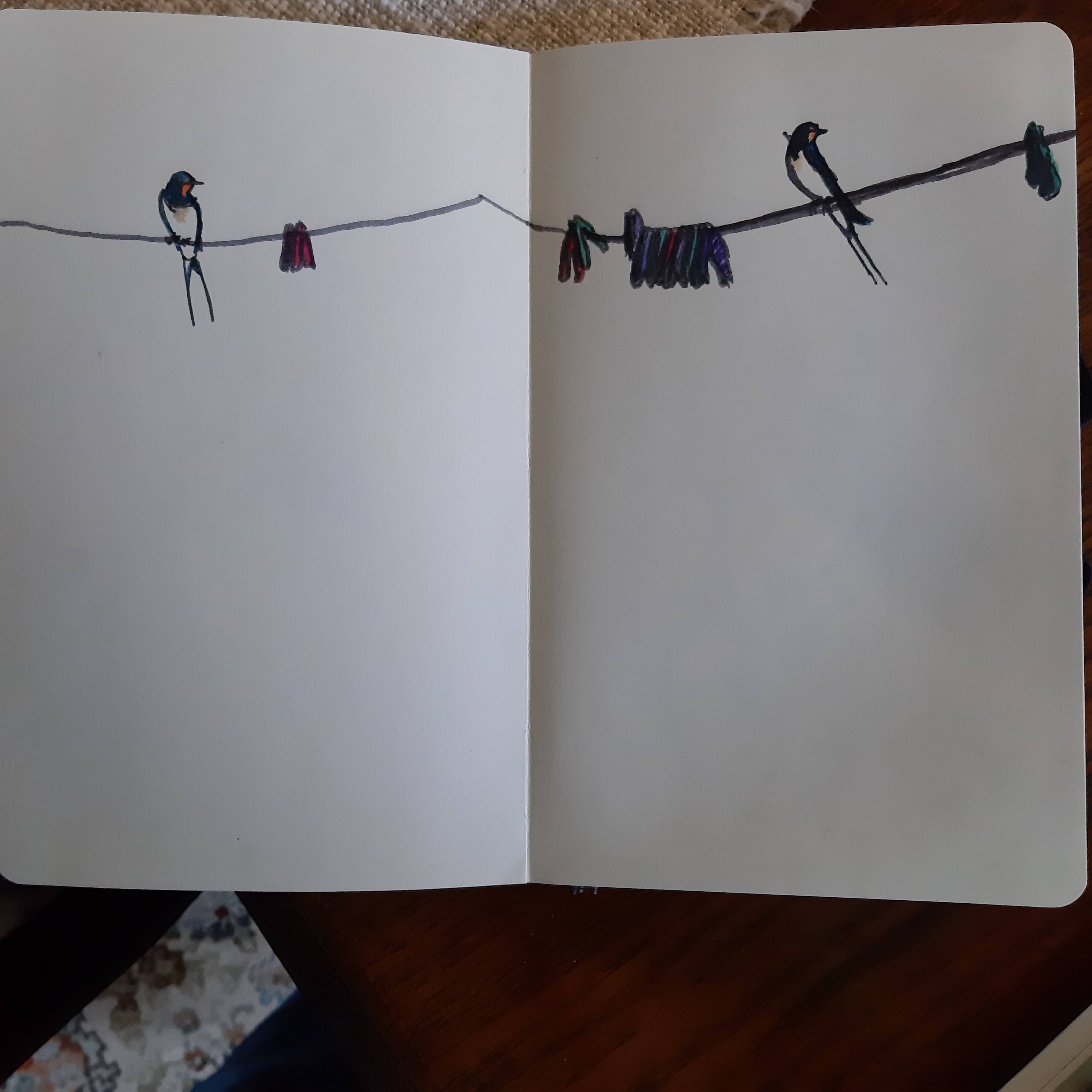 The parent swallows do this under the car port as they take a breath before feeding their babies. And when the wee ones fledge, they first sit on the washing line before taking their first flight.