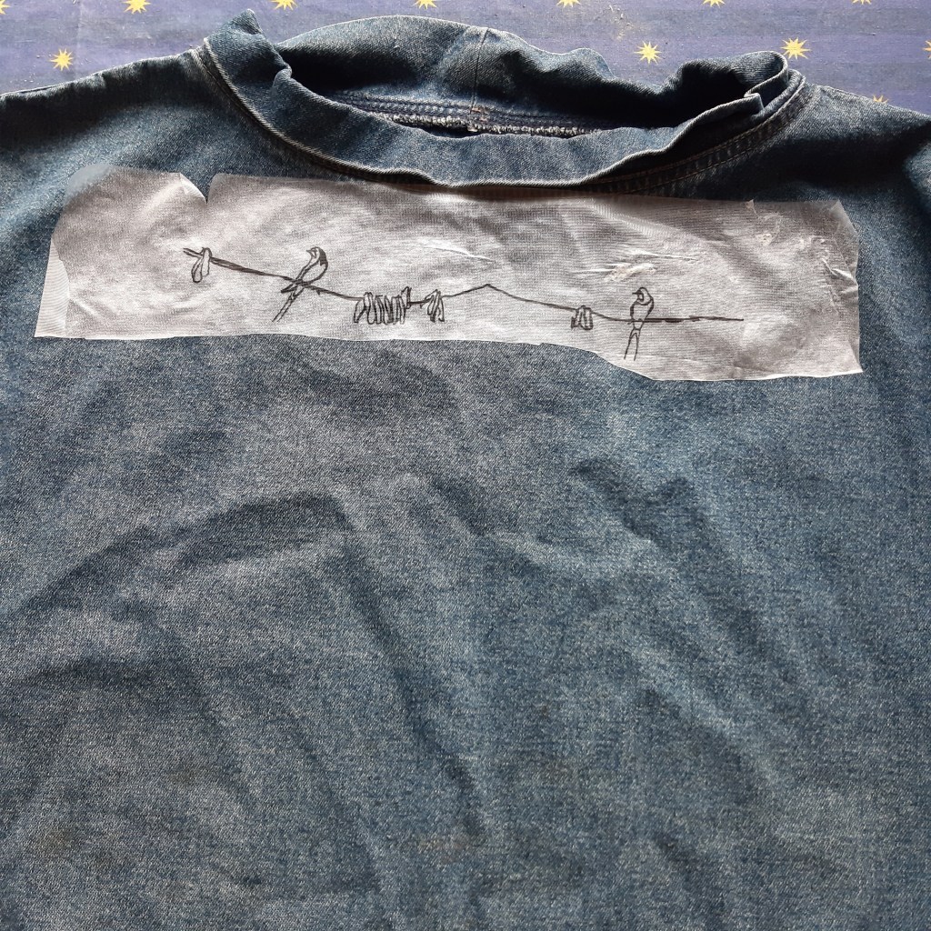 Way back in January when I found the smock and decided to embroider it Mum came up with the idea of swallows swooping over the back yoke; and across the front I embroider them sitting on the washing line.