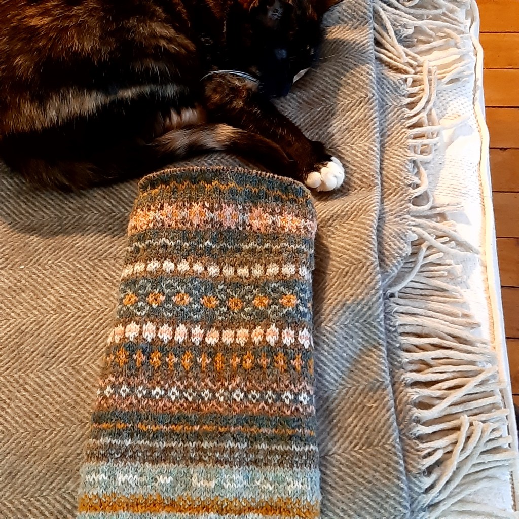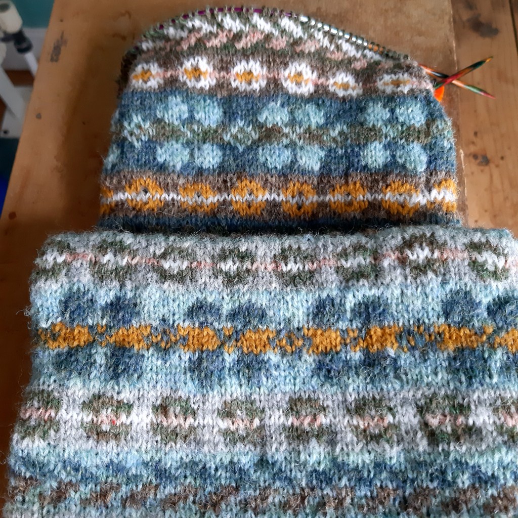 I’ve started moving some stuff to Mum’s house, in anticipation of us moving there later this year … I thought I had been clever and had only moved things I wouldn’t need in the meantime – but now that I want to take a picture of the old chincerinchees box still full of knitting needles, I realise it’s 100 miles away so you’ll have to wait for that picture. I have already regretted taking the jeely pan down there, and also the crate of Jamieson’s Spindrift Shetland wool, which is just the perfect thing for knitting colourwork, and is essential in my 100 Days Project for 2023.