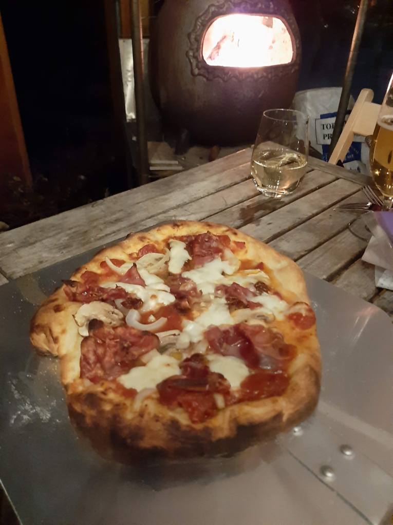 Midwinter in Scotland might seem sub optimal when it comes to al fresco dining, but there is something just magical about wrapping up warm, putting out the awning (to protect from the inevitable rain) and huddling next to the fire, watching the moon rise and cooking and eating fresh pizza.