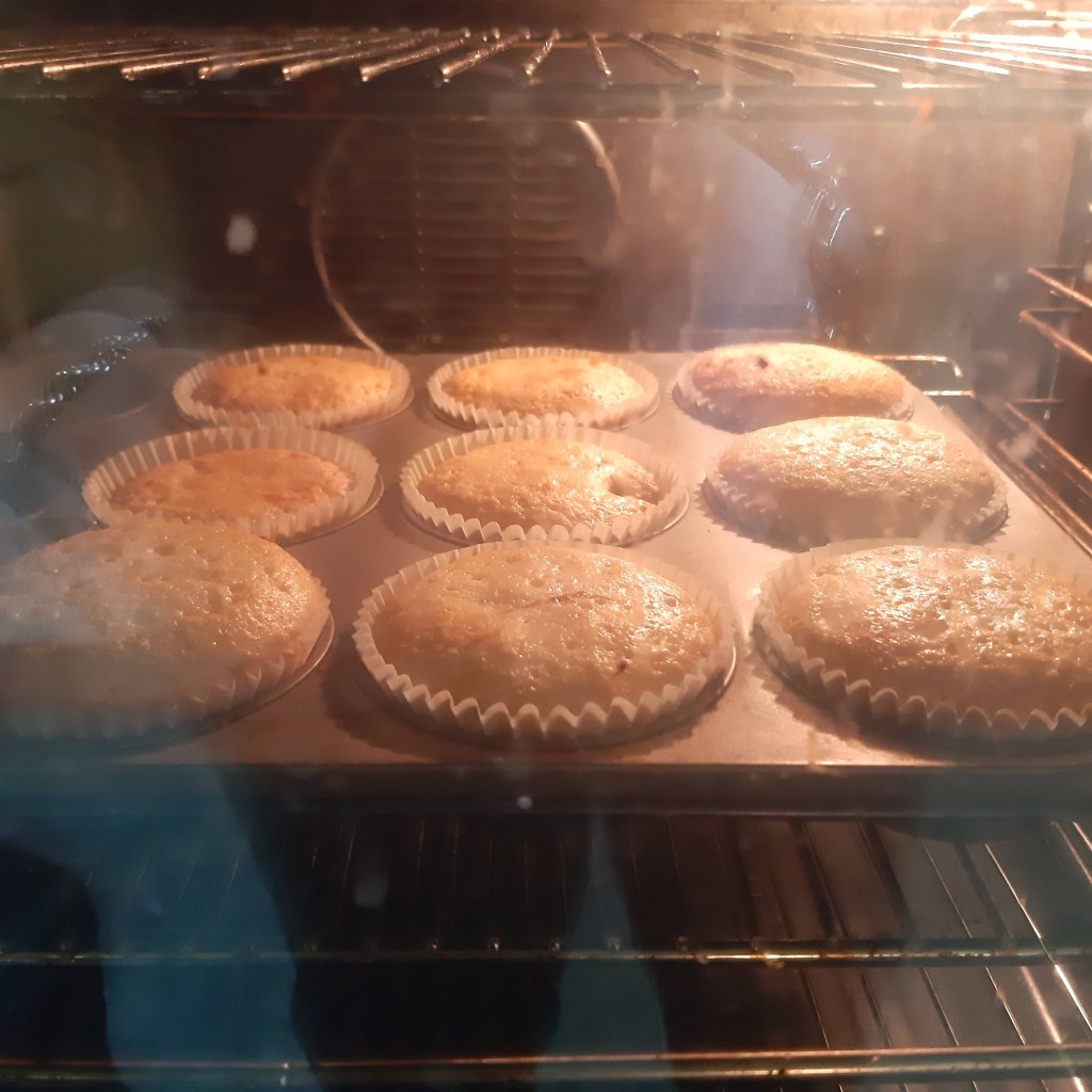 Pop them in the oven. Check them after about 30 minutes to see how they are – I’ve had some ready at about 35 minutes, others needing another ten minutes. I guess it depends on your oven doesn’t it? I test by pressing lightly on a cake with two fingers, and seeing if it springs back nicely. If not, cook it a bit more.