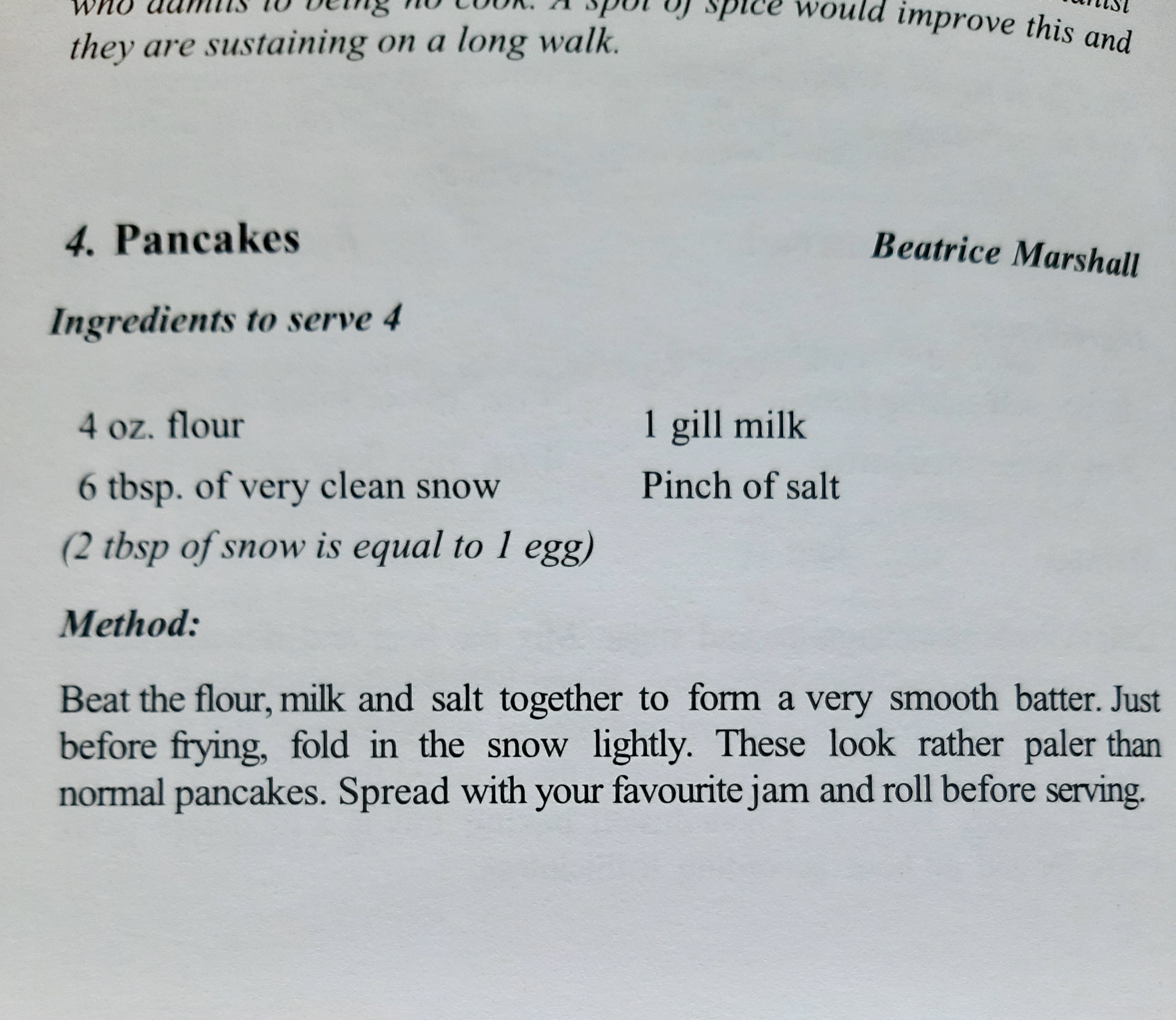 Whether you are sweet or savoury, crepes or fluffy, and whether or not you include very clean snow in your recipe, I hope you enjoy pancake day.