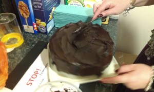 - Gently slide the tin/s into your oven and bake for 35 – 40 mins (because all ovens are not equal). The cake’s ready when a skewer inserted comes out clean as a whistle. Also note how it’s beginning to come away from the edges of the tin. And while you’re at it, turn off the radio or podcast or music, or loud children, when you take it out of the oven. Listen to it. I love that noise.