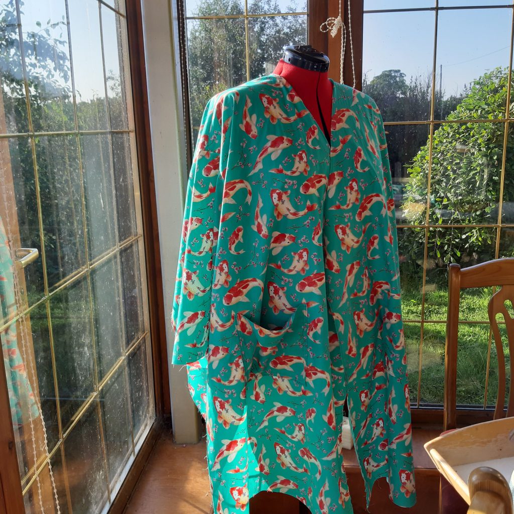 I had somehow ordered a shorter length of fabric than I needed, and only noticed when it came to cutting it out. As a result, the robe is shorter than I want… What I should do, is use a matching / clashing fabric to add an 8″ or so border along the hemline. It would immediately turn this into something that I’d wear OFTEN. One day.
