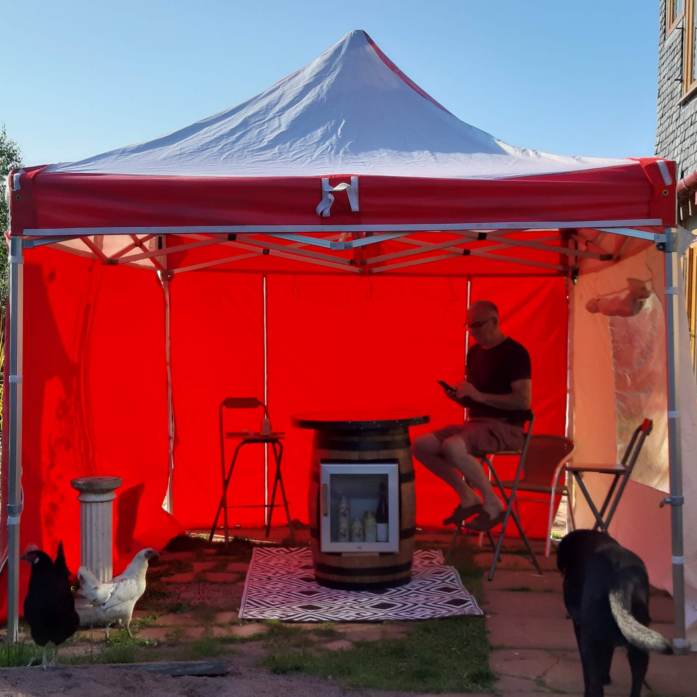 The next picture shows you The Captain’s project – a barrel converted into a table with a fridge! It’s off to a new home though so I’d better not get too fond of it.