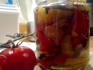 Slow roasted peppers in a jar