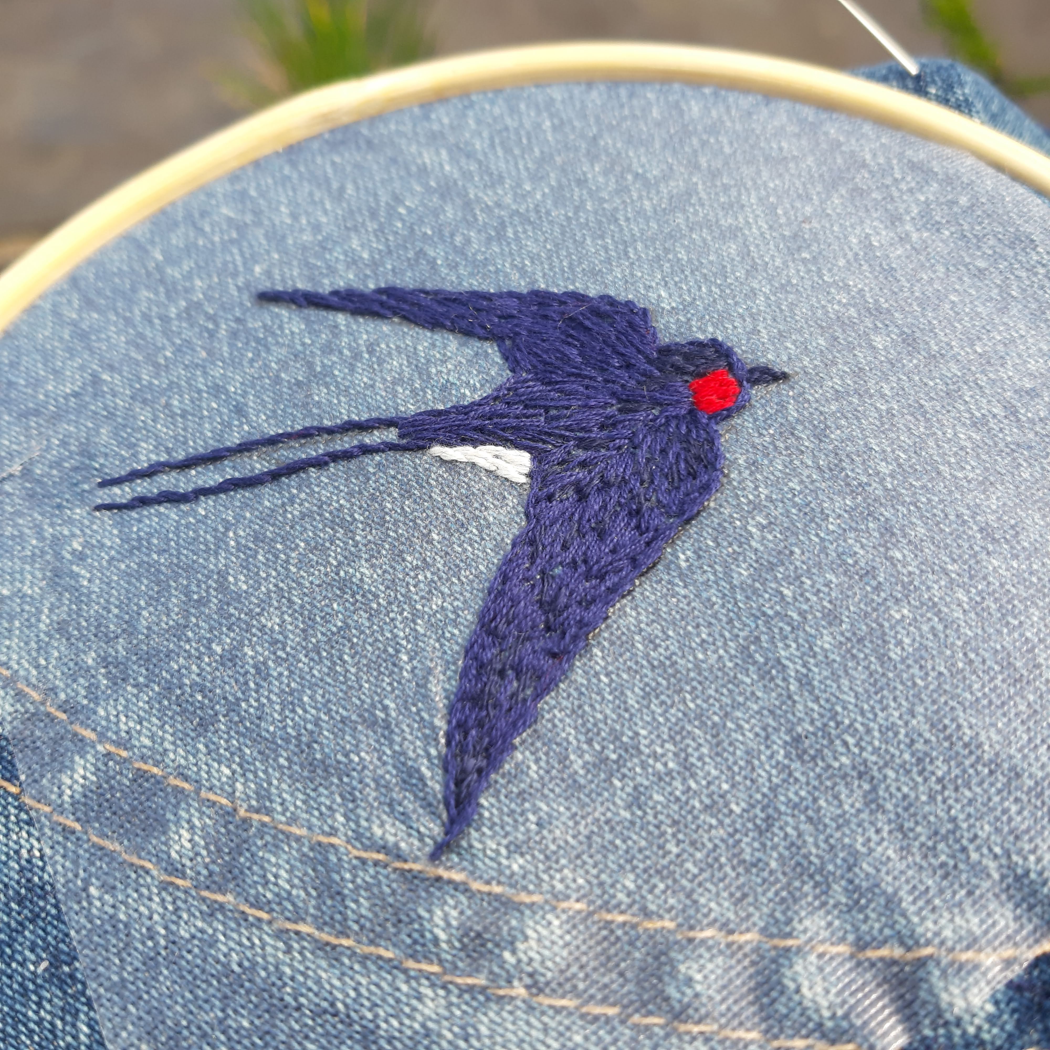 This wee swallow hasn’t changed much since yesterday, but that’s part of the point of this project I think. It just takes its own time and gives me time to unwind, to think, to lose myself in the slow stitching.